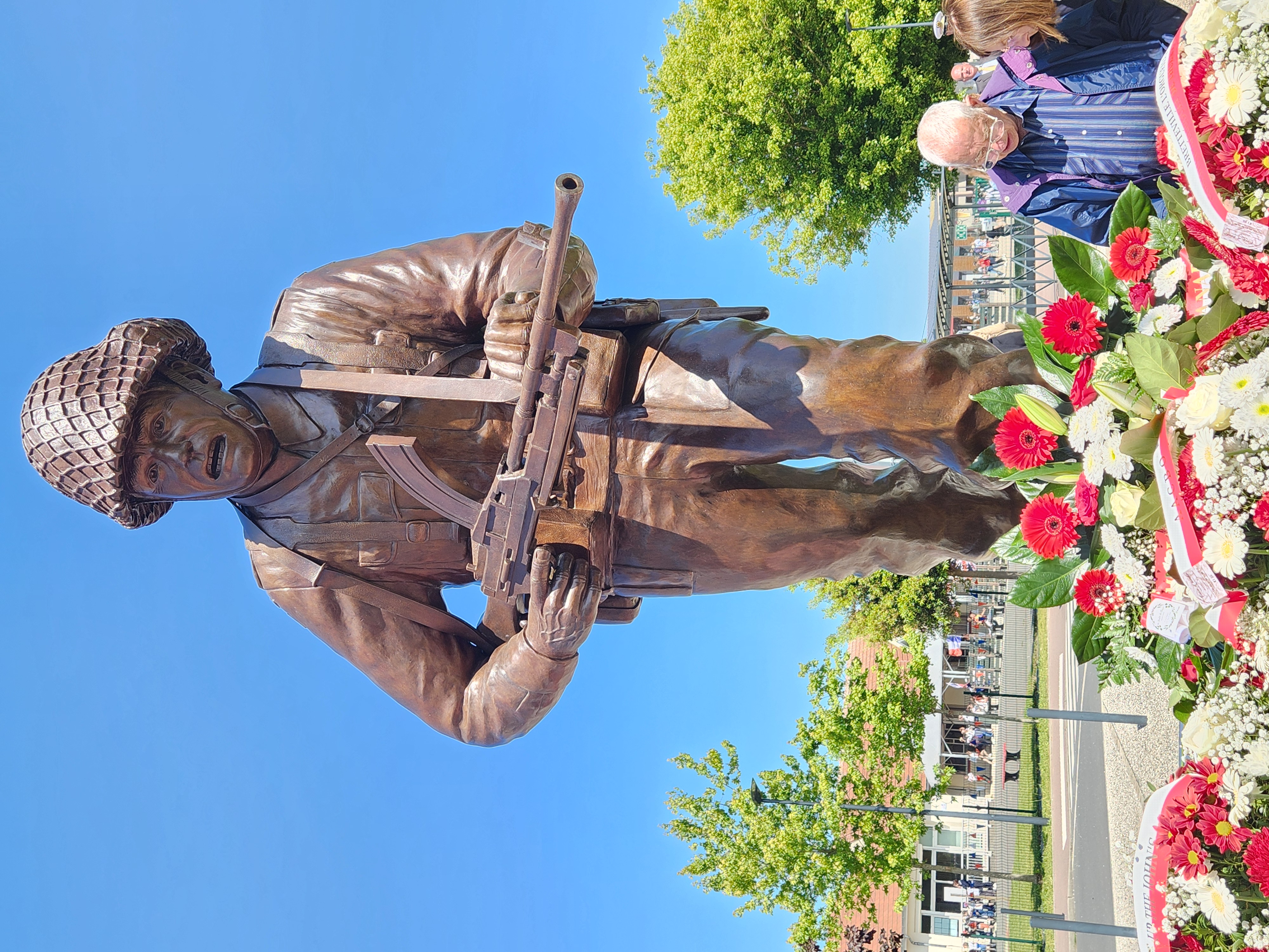 The statue, created by Don and Shirley Begg from Cochrane, Alberta, now stands in Bretteville’s Place des Canadiens, serving as a lasting memorial to the courage and sacrifice of the Regina Riflemen.